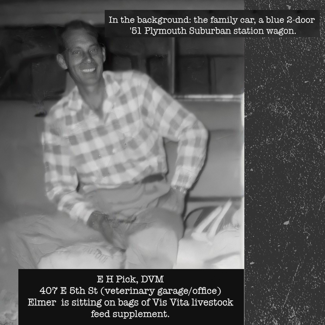 The 2-way radio was a Godsend. I remember when it broke and Harry Johnson took a day or two to fix it. It was very helpful and reliable and sorely missed when it didn’t work. Before the radio, many times Dad would get back in town from a call that was way out only to find he had another call from the same area he had just left, and had to go back. OK, maybe those were the times we heard the term “SOB sows.” I remember once Dad being really upset when he just got home and was called back to the same area. He heaved his plastic coffee cup across the kitchen into the living room, got into his practice car, and flew off again.